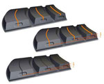 - три широкие отполированные продольные канавки, которые сообщаются с поперечными каналами на покрышке, могут прокачивать большие объемы воды под покрышкой, тем самым эффективно борясь с аквапланированием;